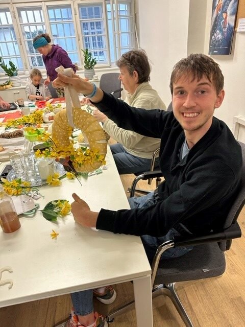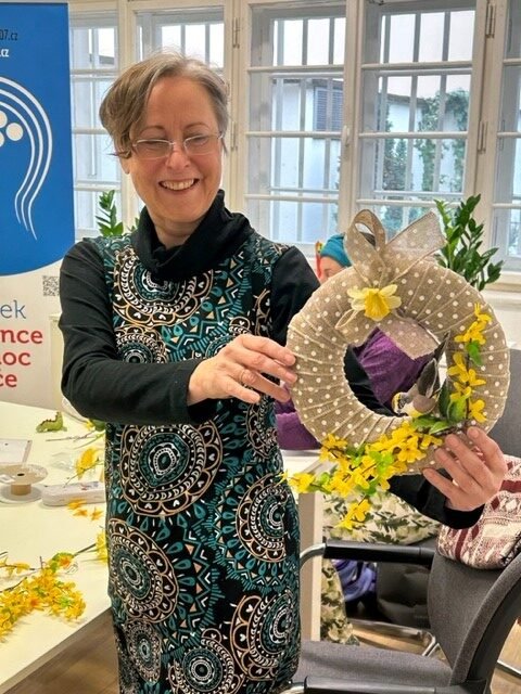 Naše ergoterapeutka Anička s námi potom zbytek odpoledne vyráběla jarní dekorace – posuďte jak nám to šlo! Velikonoční nádech bude mít sobotní tvůrčí odpoledne dne 25.3. 2023 od 14 do 17 hodin. Budeme zdobit vajíčka všemi možnými způsoby. A z bílků a žloutků, které z vajíček vyfoukneme, si uděláme banánové lívanečky ke kávě a čaji.